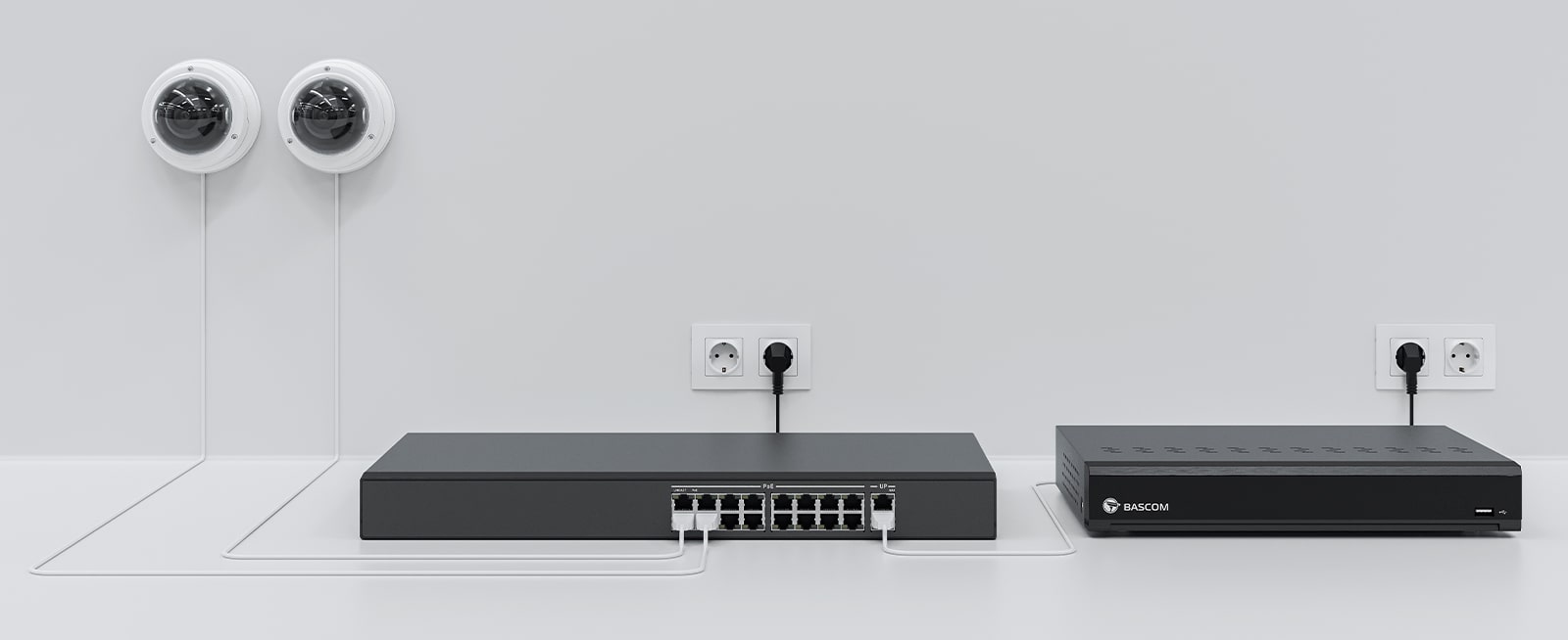 A PoE switch allows you to seamlessly integrate your camera system into an existing network. The switch connects the cameras to the network while also supplying them with power. By connecting the recorder to the same network, it automatically establishes a link with the cameras.
