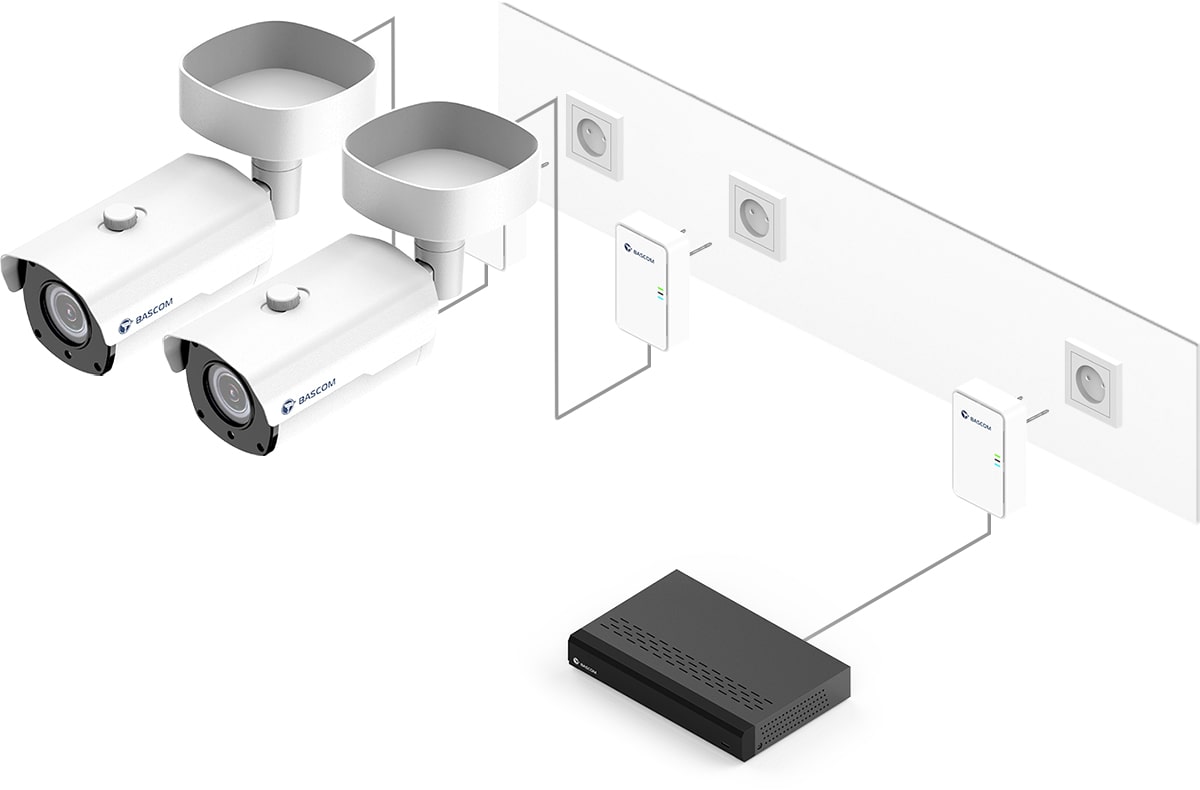 This camera system features Bascom® POWER – our groundbreaking technology for transmitting video footage via your mains power lines. Simply plug the cameras into a power socket and they’ll automatically connect to the recorder using your existing electrical wiring. This gives you the reliability of a wired connection without having to run any cables yourself.
