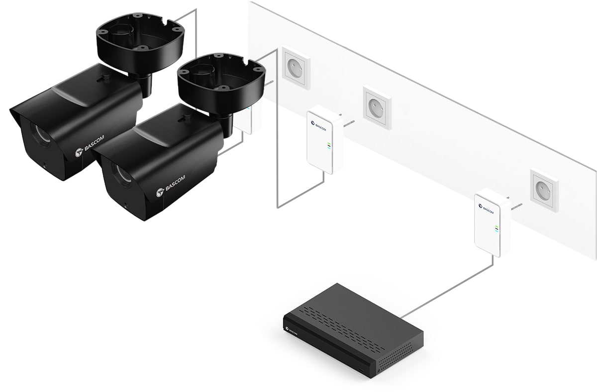 This camera system features Bascom® POWER – our groundbreaking technology for transmitting video footage via your mains power lines. Simply plug the cameras into a power socket and they’ll automatically connect to the recorder using your existing electrical wiring. This gives you the reliability of a wired connection without having to run any cables yourself.