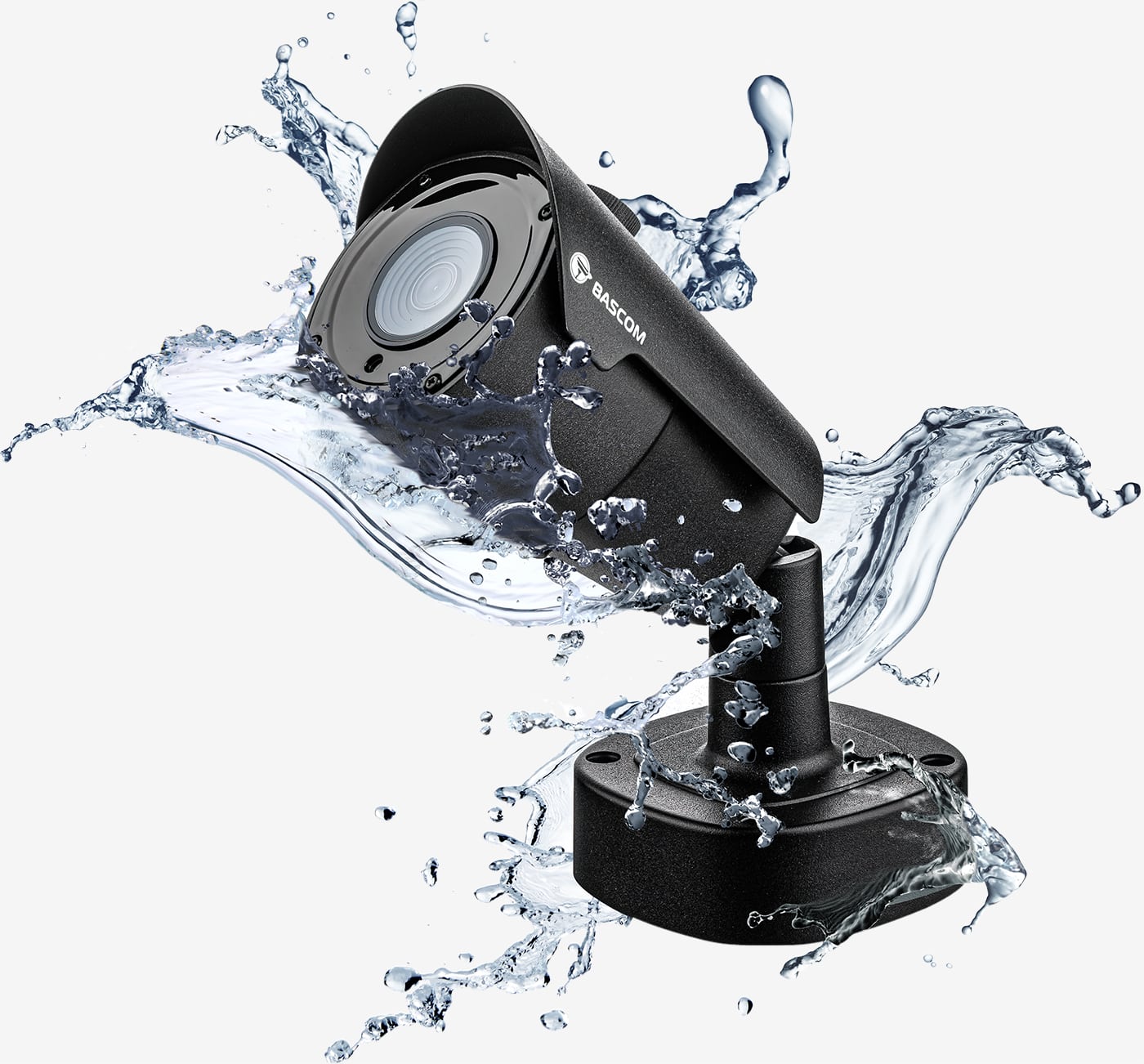 Bascom cameras are weatherproof (IP67-rated) and built to withstand all conditions, making them ideal for both indoor and outdoor use. The robust housing is made from hardened aluminium and finished with a high-quality powder coating. This protects the cameras against corrosion and wear, making them a durable choice with an exceptionally long service life.