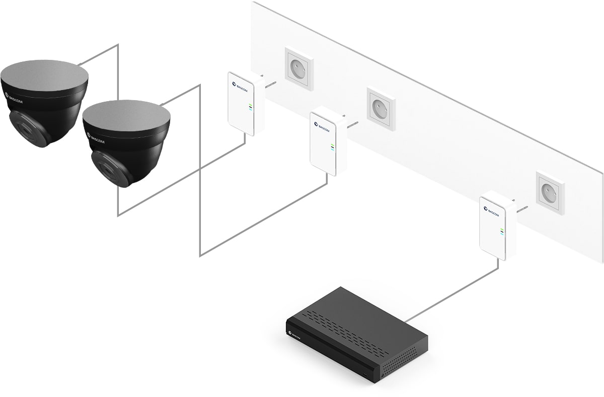 This camera system features Bascom® POWER – our groundbreaking technology for transmitting video footage via your mains power lines. Simply plug the cameras into a power socket and they’ll automatically connect to the recorder using your existing electrical wiring. This gives you the reliability of a wired connection without having to run any cables yourself.